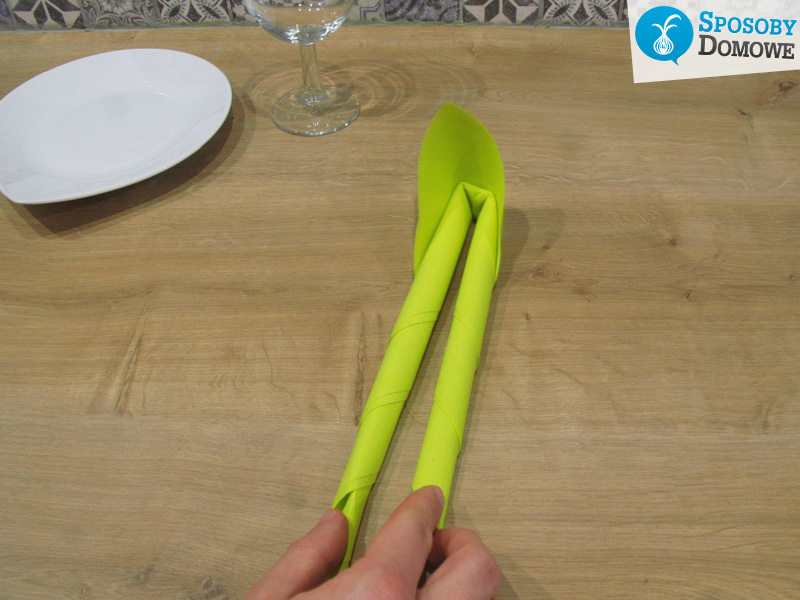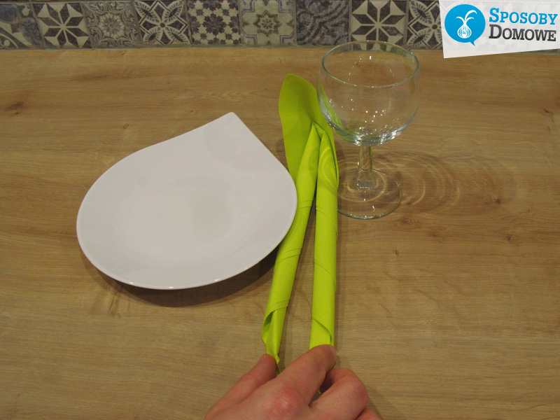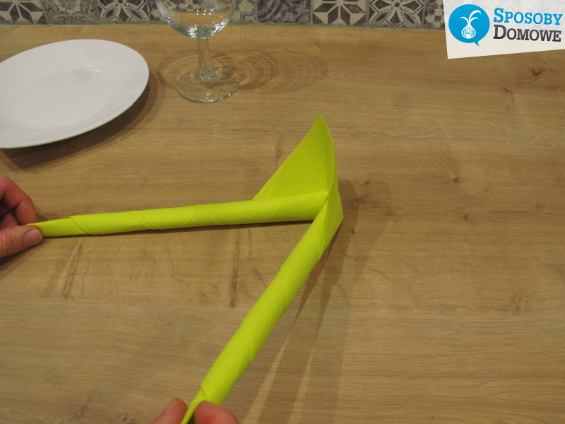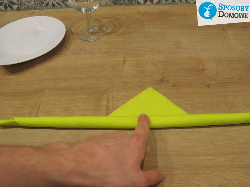 2. Kolejnym krokiem jest zwinięcie serwetki w rulon, zostawiając kawałek serwetki nie zwiniętej.